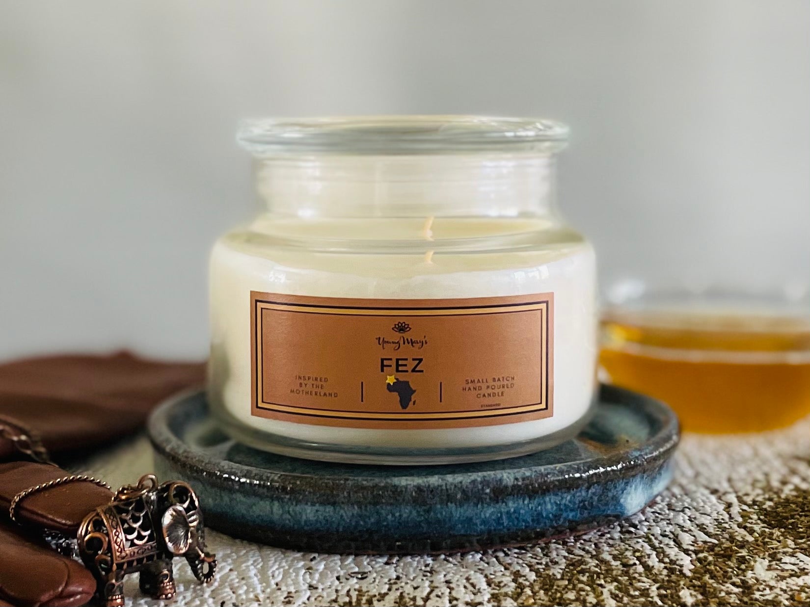 Handmade Scented Candle named after the cultural capital of Morocco. Fez is a unique and entrancing fragrance, capturing the essence of the two sprawling medinas that make up this ancient city. Powerful enough to transport you to another time and place.
