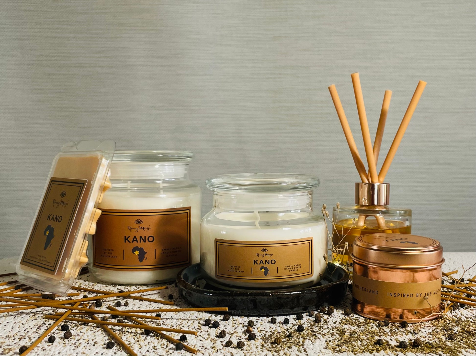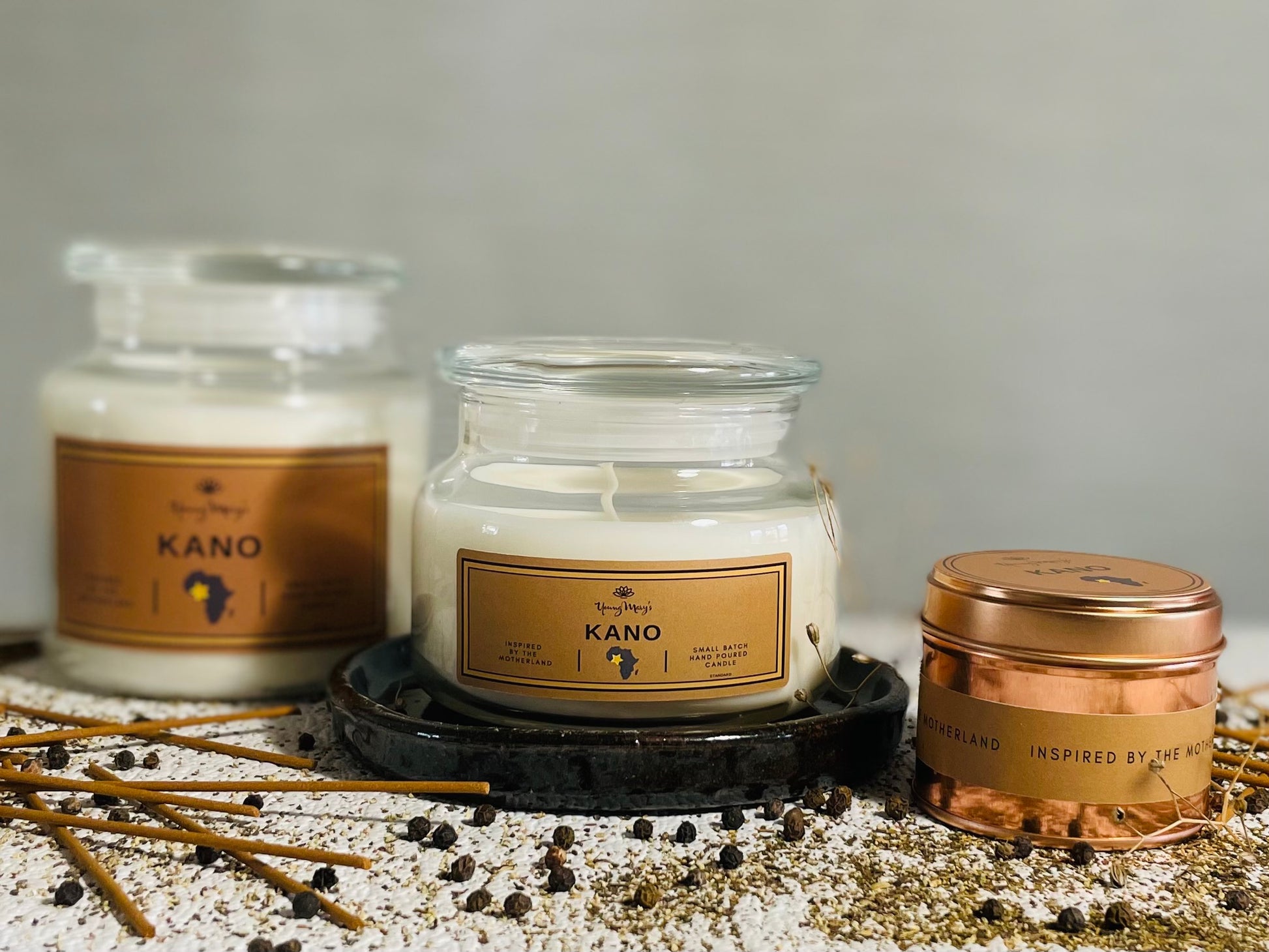 Handmade Scented Candle inspired by Kano, the commercial center of Northern Nigeria and capital of the Kano Emirate. Kano is a warm and woody scent reminiscent of the Nigerian city’s many tanneries and ancient dye pits.