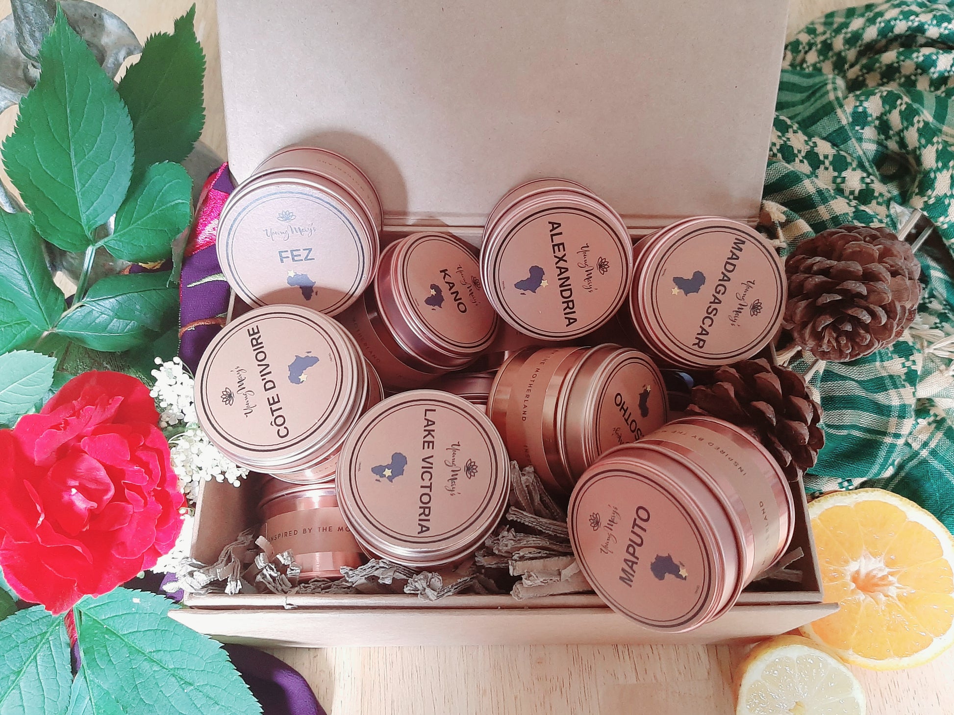 Take a trip around the Motherland with our rose gold tin travel pack. North, West, Southern and East--we have the continent covered with one travel candle from the entire Young Mary's collection available.