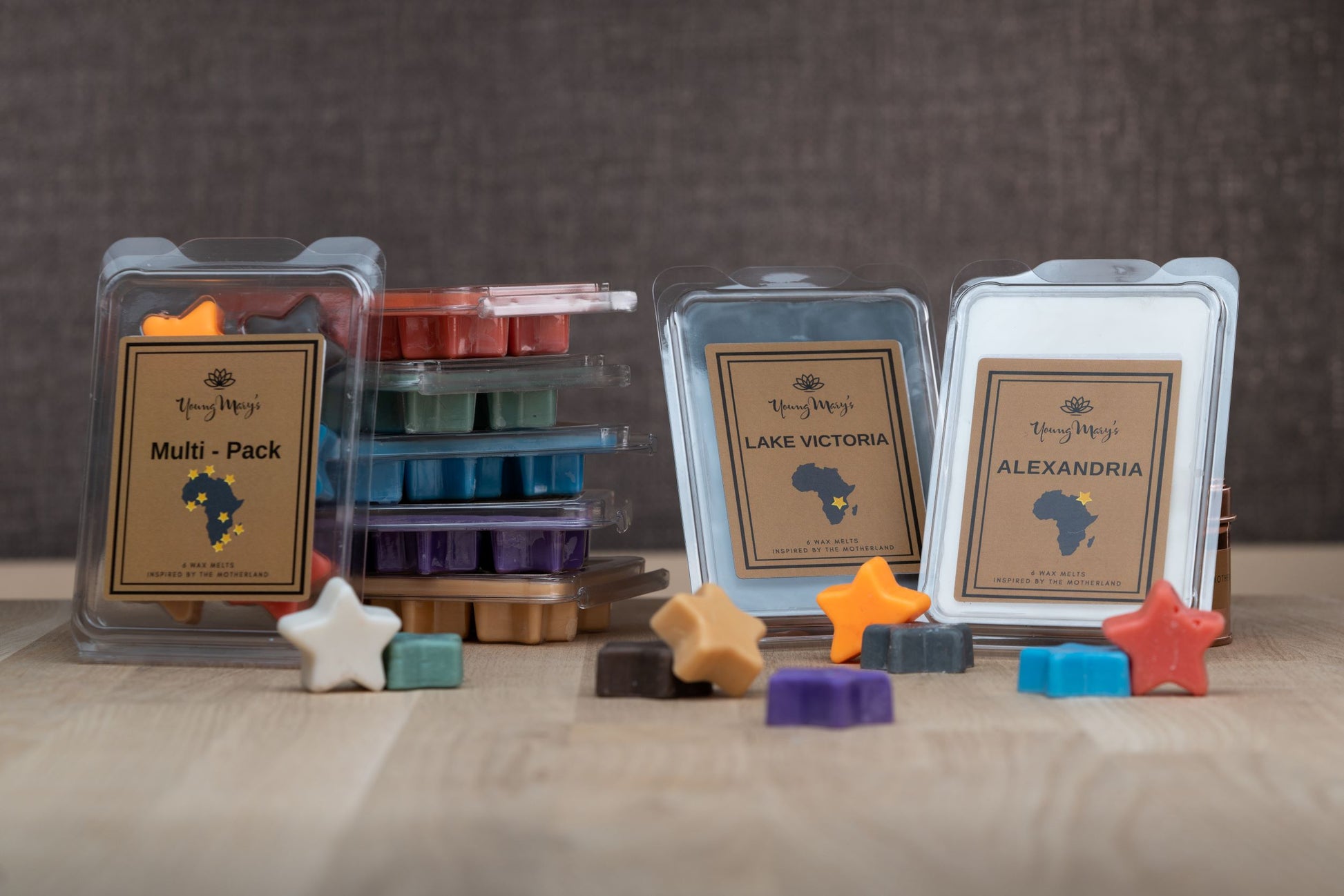 Handmade scented soy candle wax tarts and melts fragranced with scents inspired by the beautiful sights and sounds of Africa. Each clam shell contains 6 breakaway tarts which can be used in both electric and tea light wax warmers.